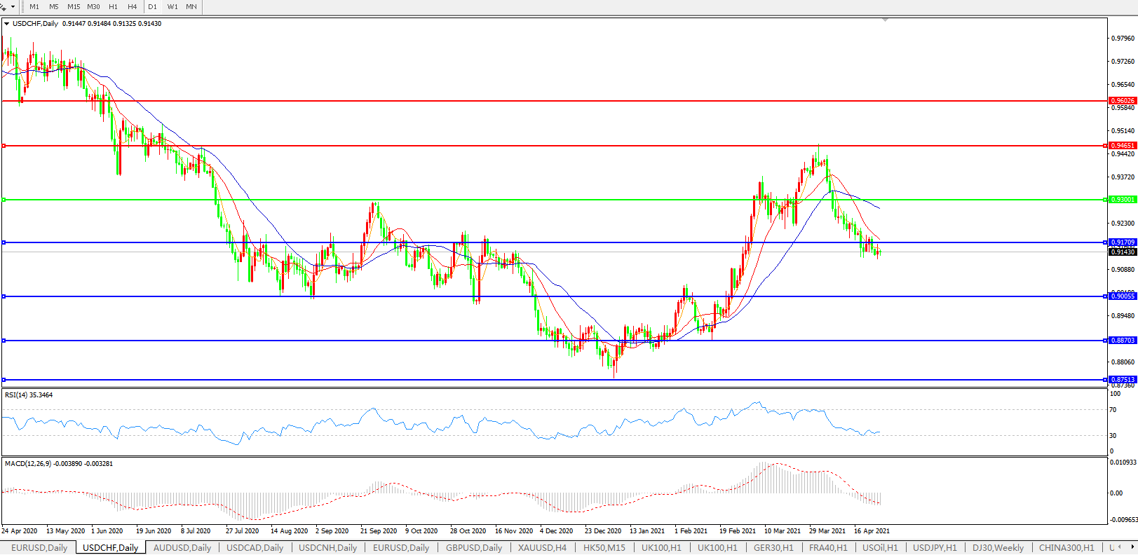 交易策略:0.9300下方看跌,目标0.9170、0.9000