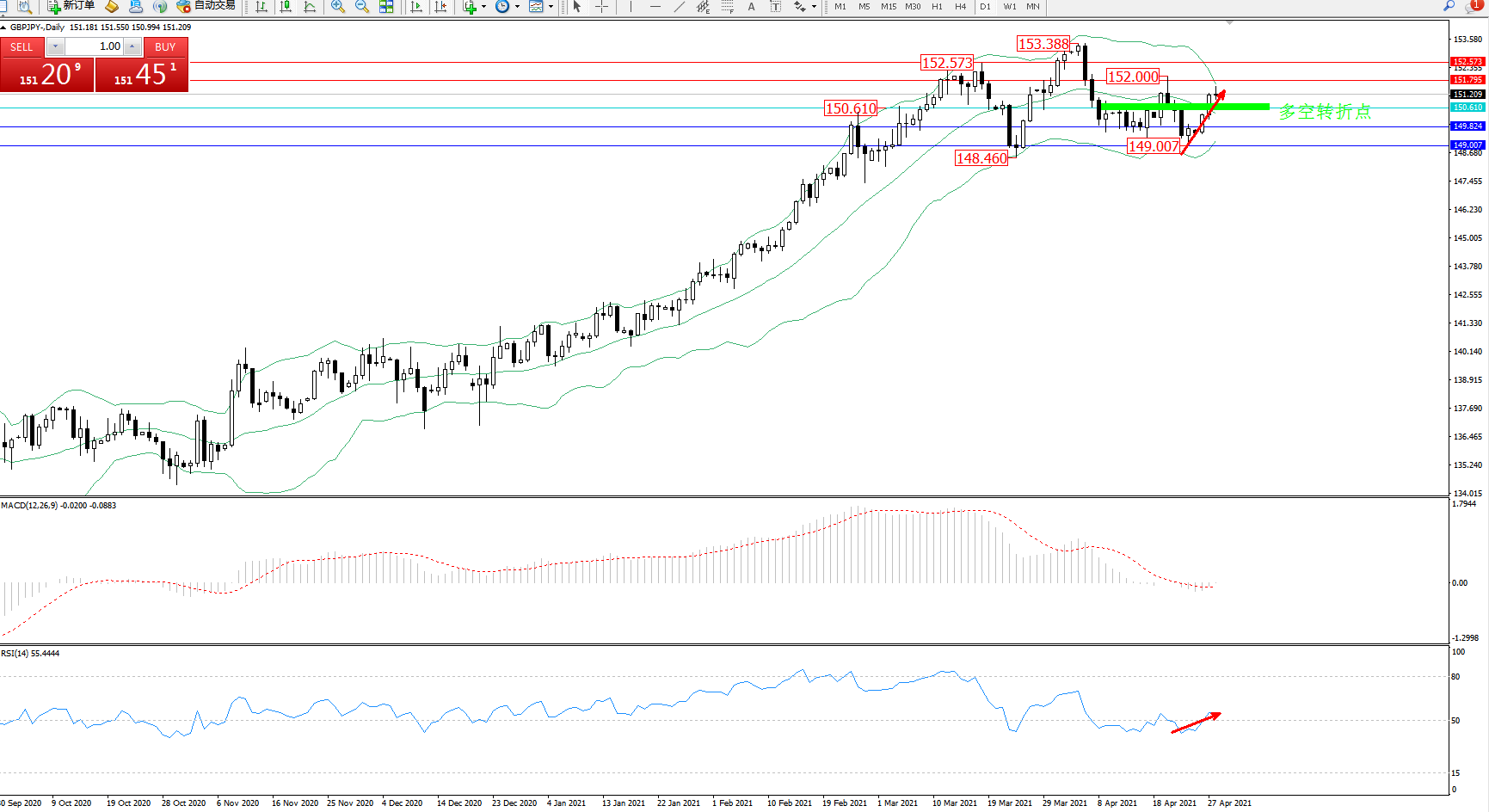 英镑兑日圆维持151.209附近震荡,英国经济将实现二战以来最快的增长。英国央行经济学家预测,欧元将像“盘绕的弹簧”一样复苏。不过,尽管英国政府已投入大量资金刺激经济,以维持企业运营,但即便考虑到规模上的差异,英国政府的刺激力度与美国1.9万亿美元刺激计划相比也相形见绌。但英国成功地为公民接种疫苗,并普遍遵守严格的封锁规则,这意味着新冠肺炎的传播已经减少。自第二波疫情高峰以来,英格兰和威尔士的新冠死亡人数下降了97%。因新冠肺炎住院的人数也下降到了1月份峰值的4%。民众已经开始在商店和餐馆消费,到7月份将恢复某种程度的正常。