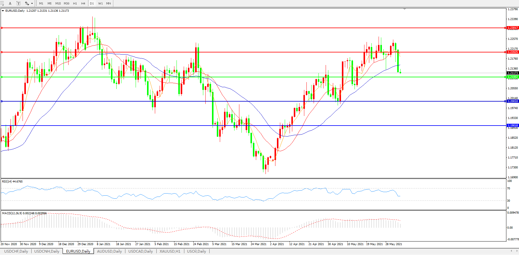 备选策略:1.2100下方看跌,目标1.2000、1.1900