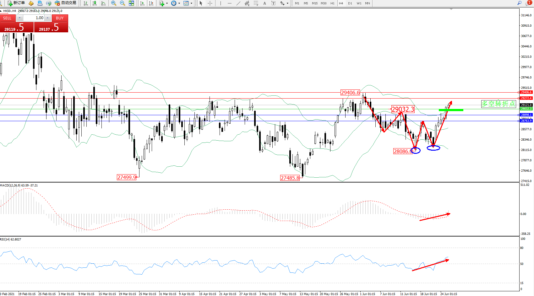 技术点评:空头动力延续布林带指标通道中下轨区间持续震荡下行,低位呈W底型态震荡反手上扬,触及上轨附近节点后节节攀升,多头动力未见止步迹象,布林带指标呈张口走势持续中,MACD指标低位多头动力持续震荡上破0轴线进入多头区域持续上移中,RSI指标处于50均衡线上方多头区域维持震荡向上拉升;