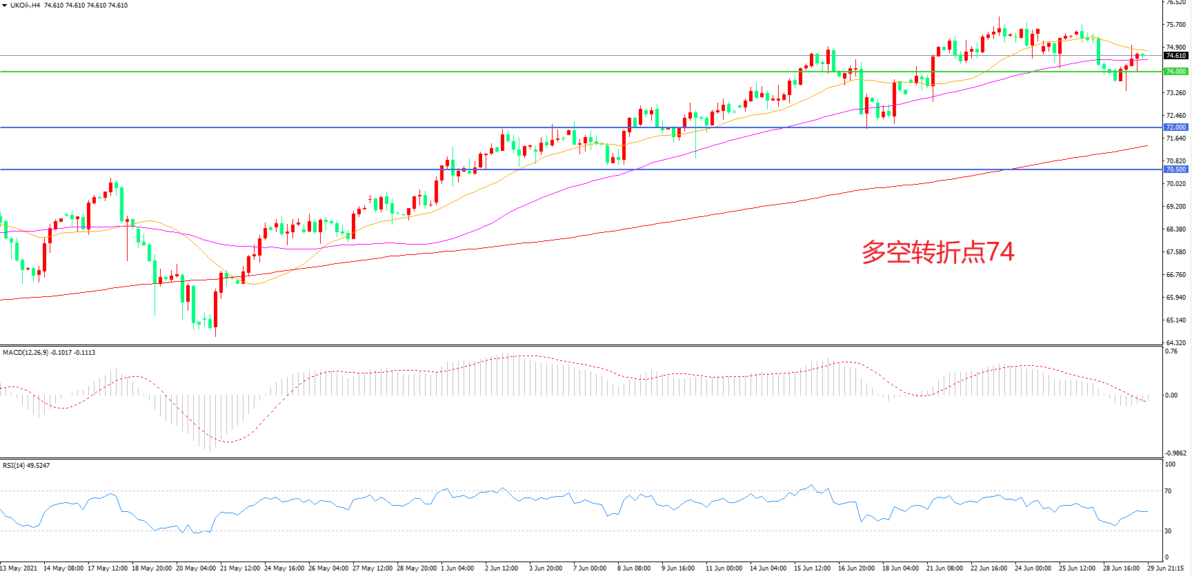 交易策略:在74.00之上看涨,目标77.00 80.00