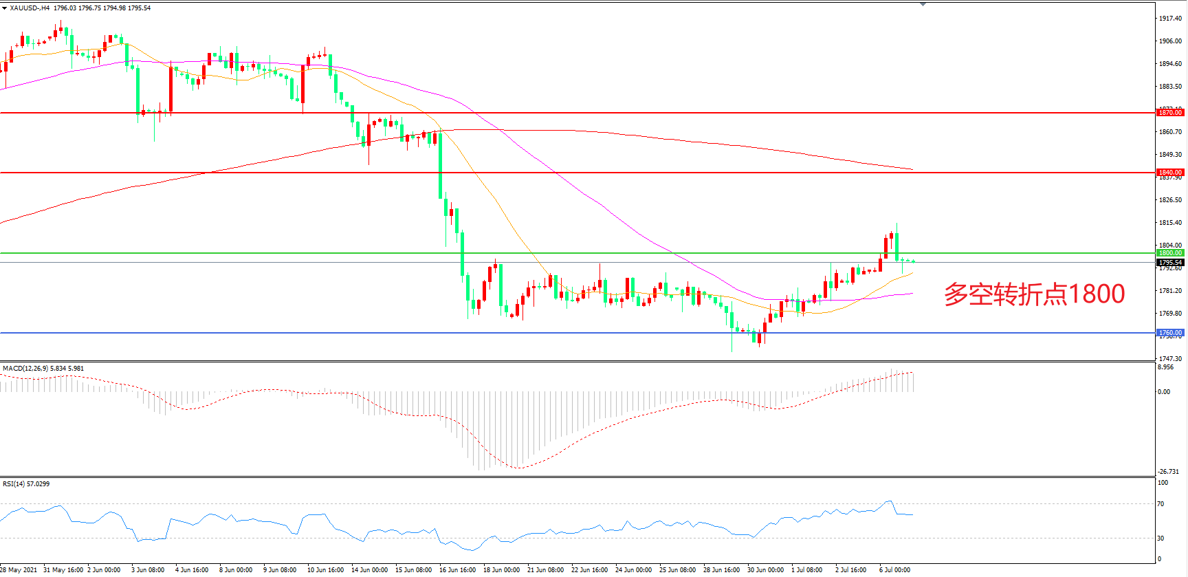 交易策略: 在1800.00之上看涨,目标1840.00 1870.00