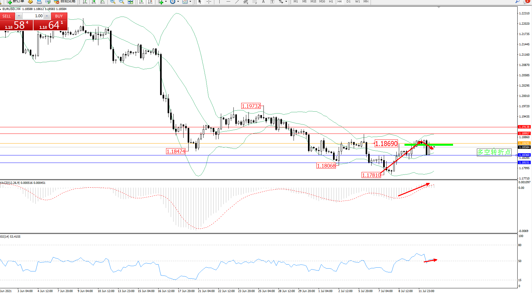 交易策略:1.18690下方看跌,目标1.18360、1.18151