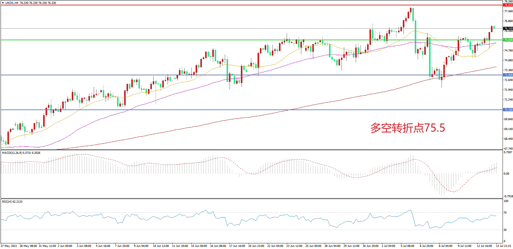 支撑位:73.00 70.50
