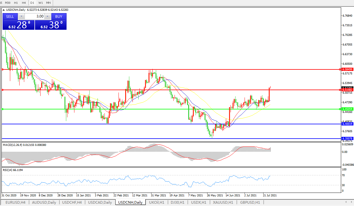 交易策略: 在6.4505之上,看涨,目标价位为6.5150,然后为6.5850。