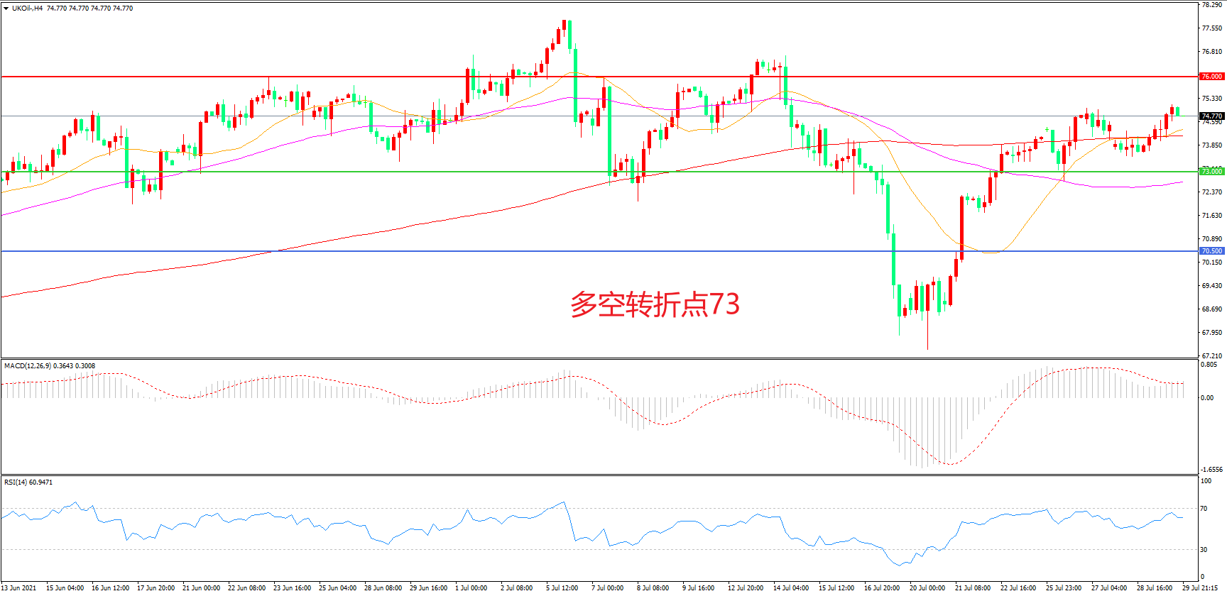 交易策略:在73.00之上看涨,目标76.00 79.00