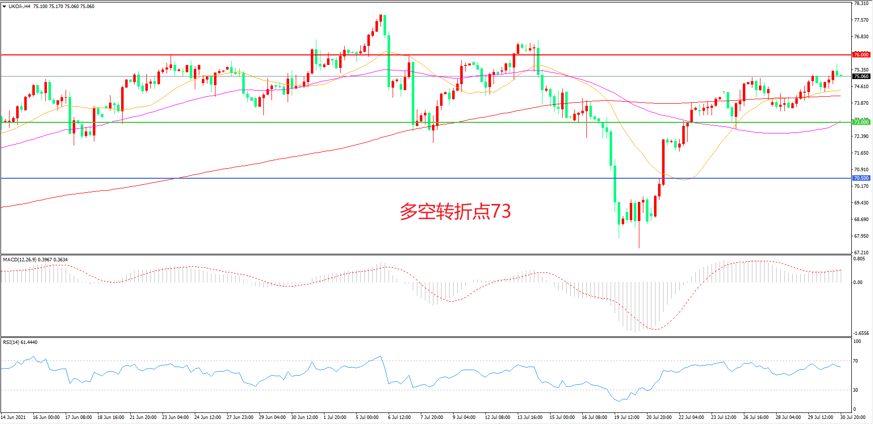 交易策略:在73.00之上看涨,目标76.00 79.00
