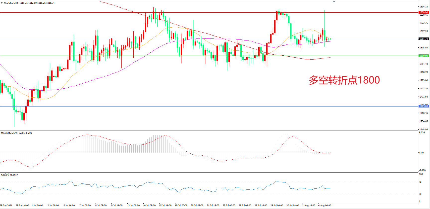 交易策略:  在1800.00之上看涨,目标1830.00       1860.00