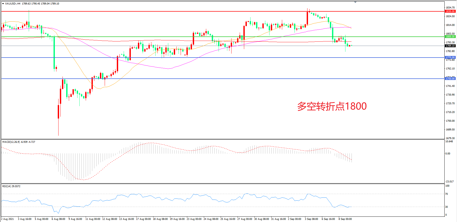 周三(9月8日),美联储三把手威廉姆斯在讲话中声称仍然支持在今年晚些时候开始Taper,美元指数走强创逾一年新高,金价承压回落,收报1790.43美元/盎司。今天市场将迎来欧洲央行利率决议,市场预计欧央行将从四季度开始,把每月购债目标从目前的800亿欧元降至700亿欧元,这可能会对美元走势产生明显冲击,务必重点关注。