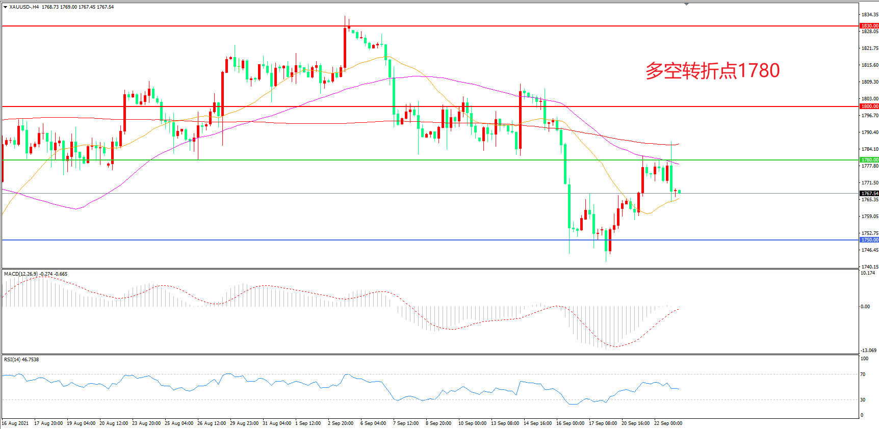 多空转折点:1780.00