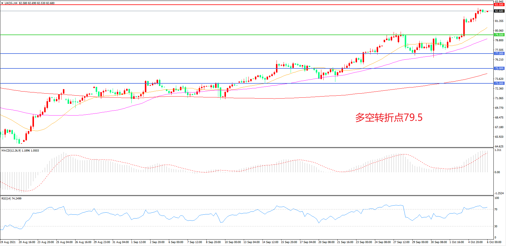 由于全球遭遇能源荒叠加OPEC+最新会议决定不增产,原油市场多头气势如虹,布伦特原油大幅飙升后收报82.53美元/桶。在过去七周,油价已经几乎毫无干扰地持续上涨,累涨逾25%,但这并不意味着上涨的潜力枯竭, 寒冷的天气可能导致电力从天然气转向石油或煤炭,也造成石油供应持续紧张。