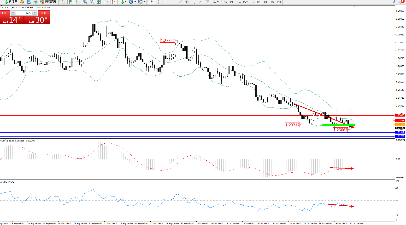 交易策略:1.23317下方看跌,目标1.22917、1.22705