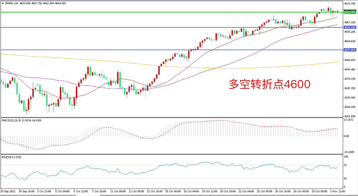 周一(11月1日),在美联储可能宣布启动Taper的本周会议召开前,投资者权衡经济数据和企业财报释放的信号, ISM制造业指数降幅低于预期,标普500延续强势表现,收报4602.75点。目前美股市场仍然受益于强劲的财报季表现,强烈的风险偏好推升美股不断创出新高,重点关注本周议息会议及鲍威尔新闻发布会的表现。