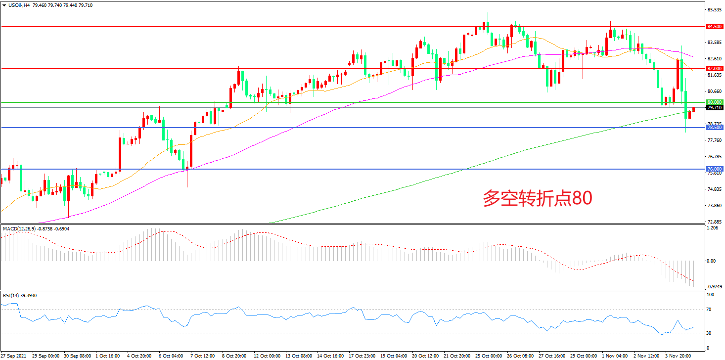 交易策略:在80.00之下看跌,目标78.50               76.00