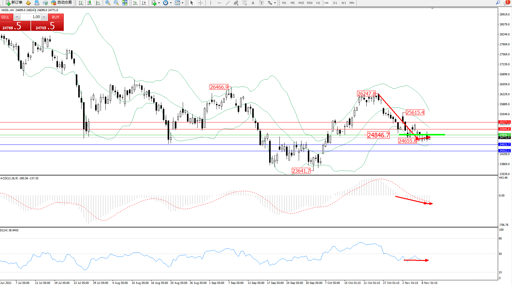 交易策略:24846下方看跌,目标24521、24312