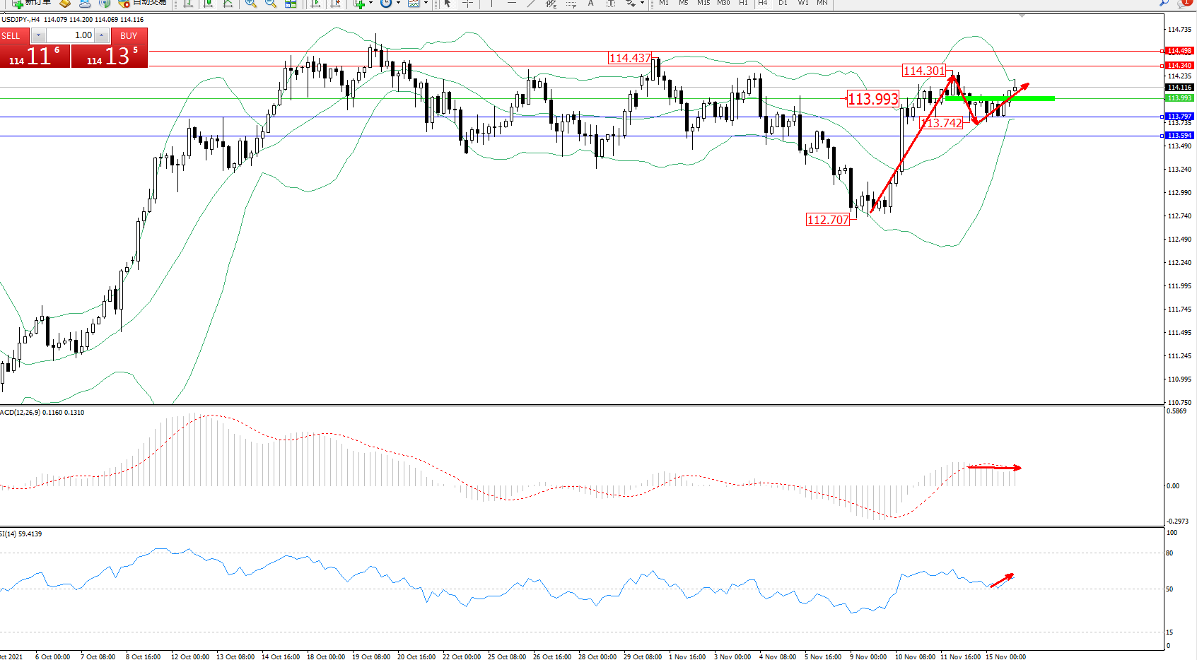 支撑位:113.797、113.594