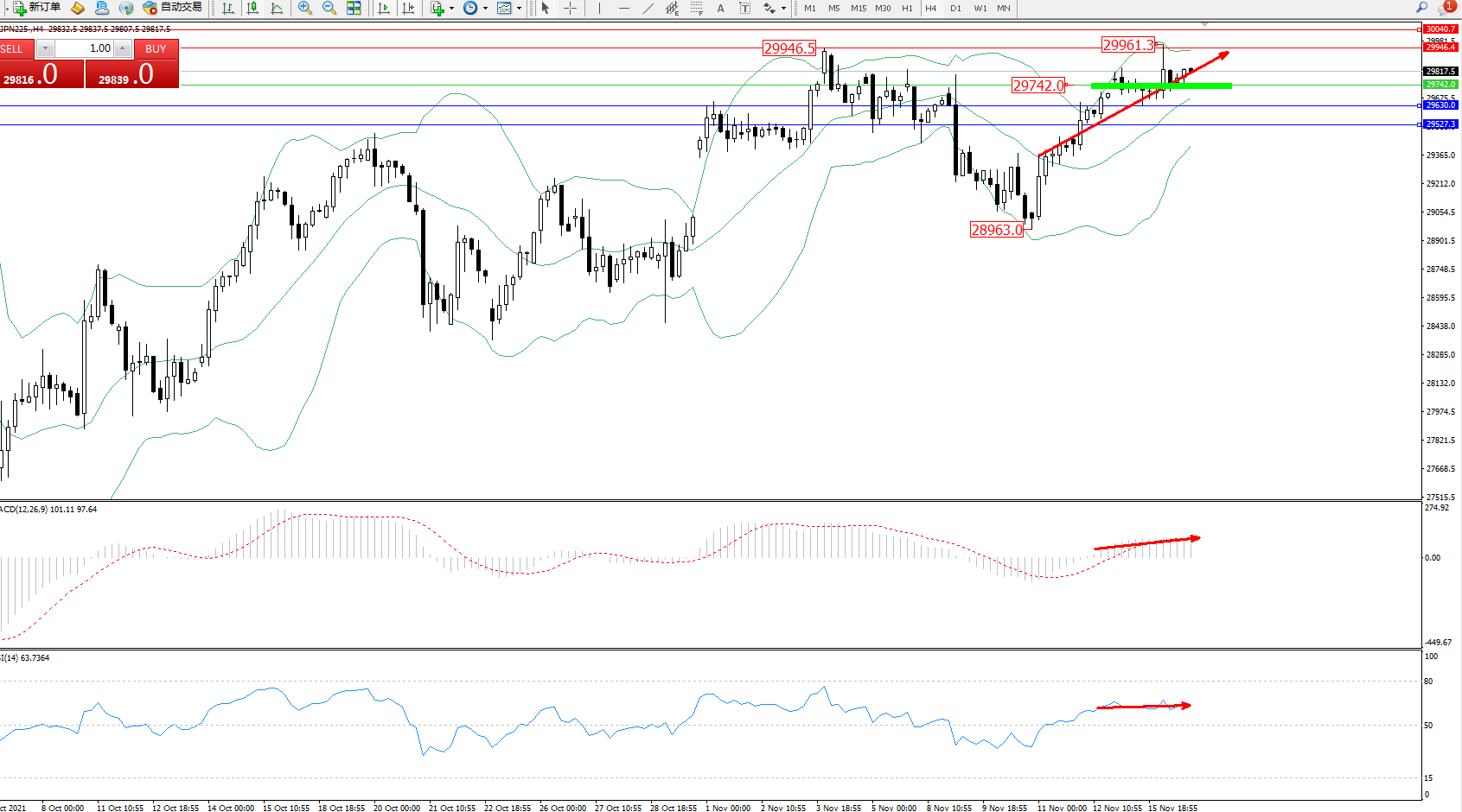 技术点评:多头动力延续布林带指标通道中上轨区间持续震荡上扬,高位触及上轨附近节点后开始整理,短期多头动力短暂突破前高29946位置后开始调整,布林带指标呈收口持续中,MACD指标处于0轴线上方多头动力维持整理平移,RSI指标处于50均衡线上方多头区域持续窄幅整理中;