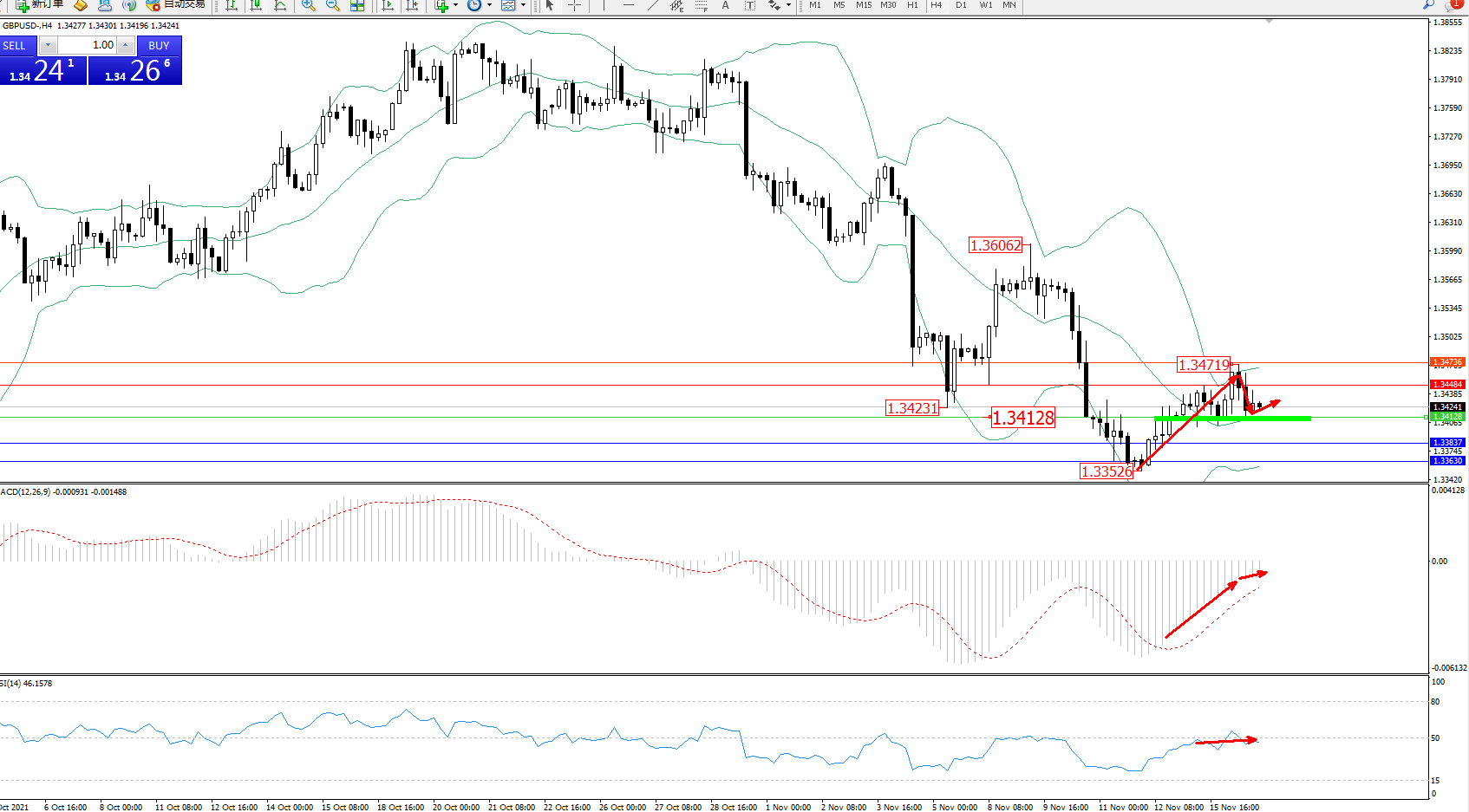 交易策略:1.34128上方看涨,目标1.34484、1.34736