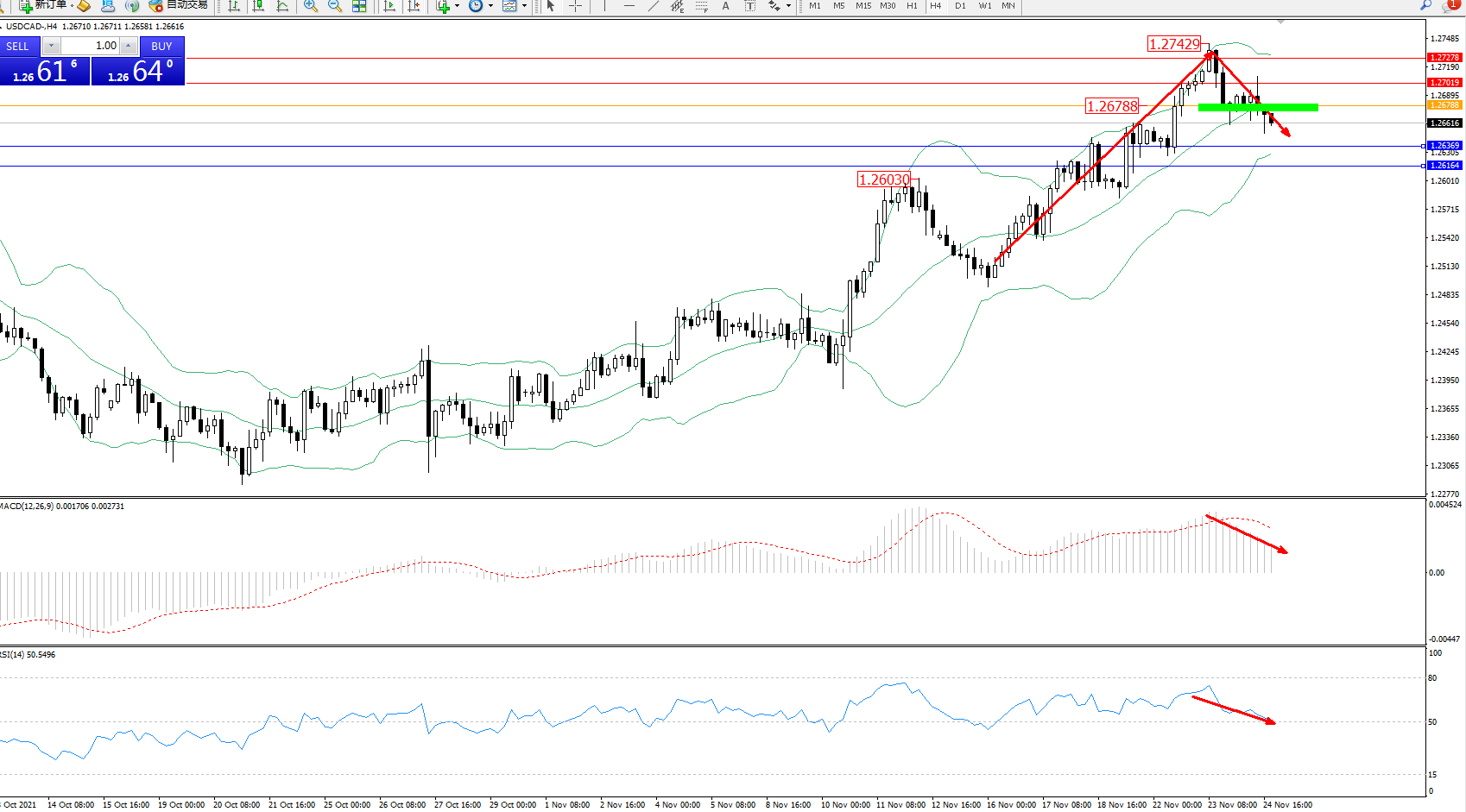 交易策略:1.26788上方看涨,目标1.27019、1.27278