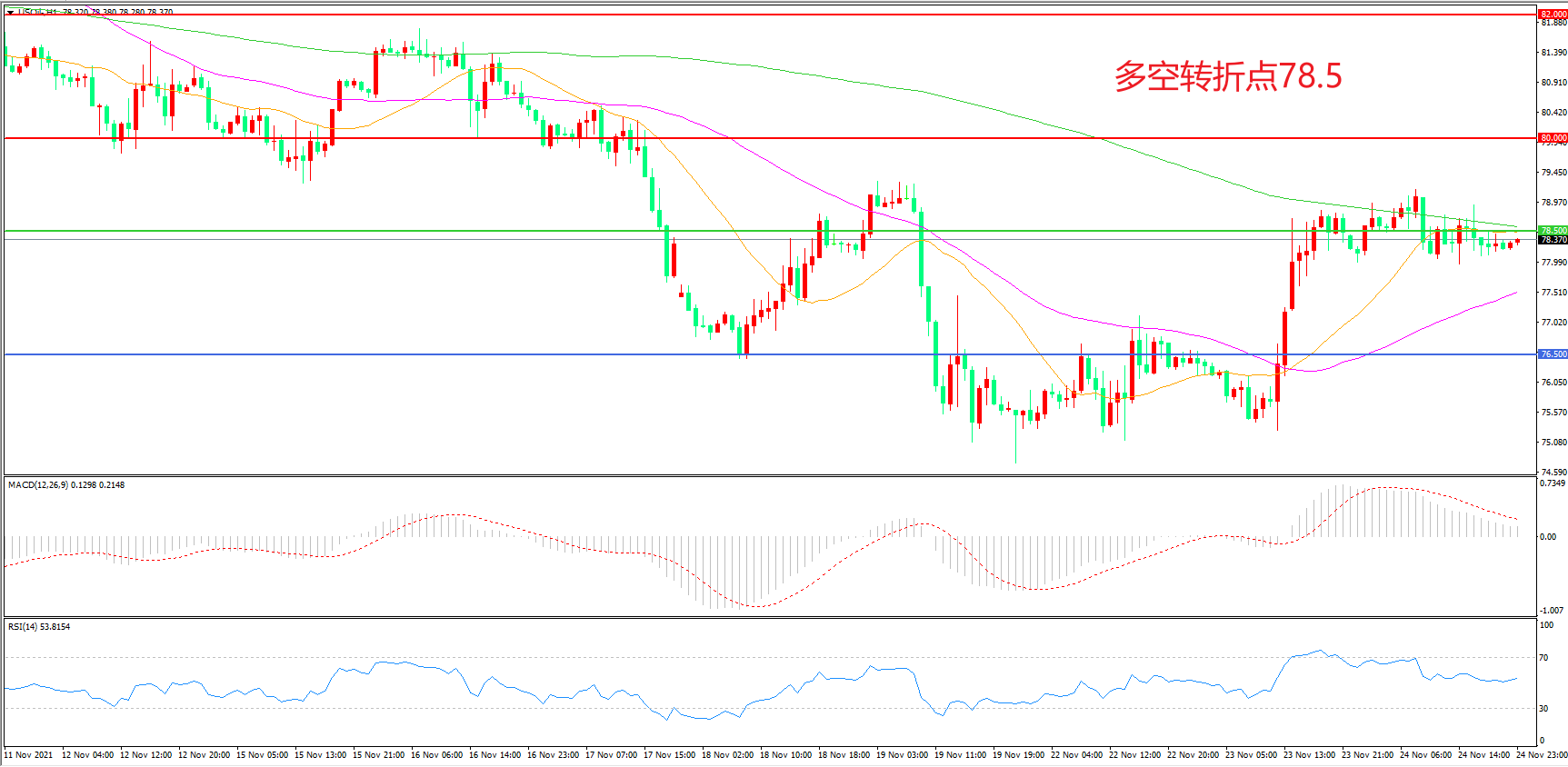 交易策略:在78.50之上看涨,目标80.00 82.00