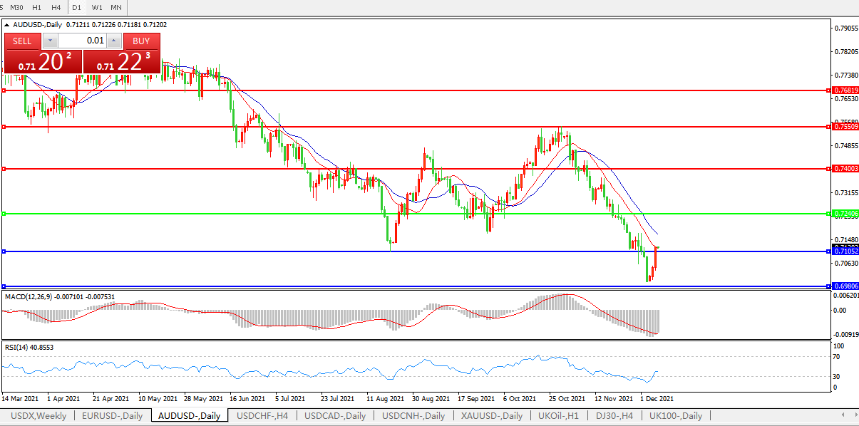 交易策略:0.7240下方看跌,目标0.7100、0.6980