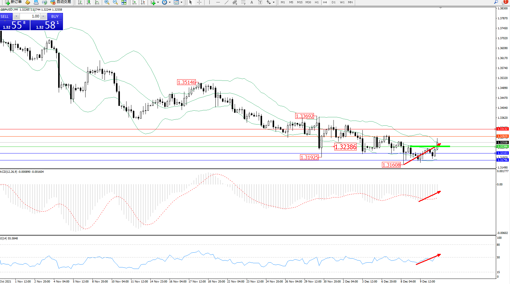 交易策略:1.32386上方看涨,目标1.32820、1.33132