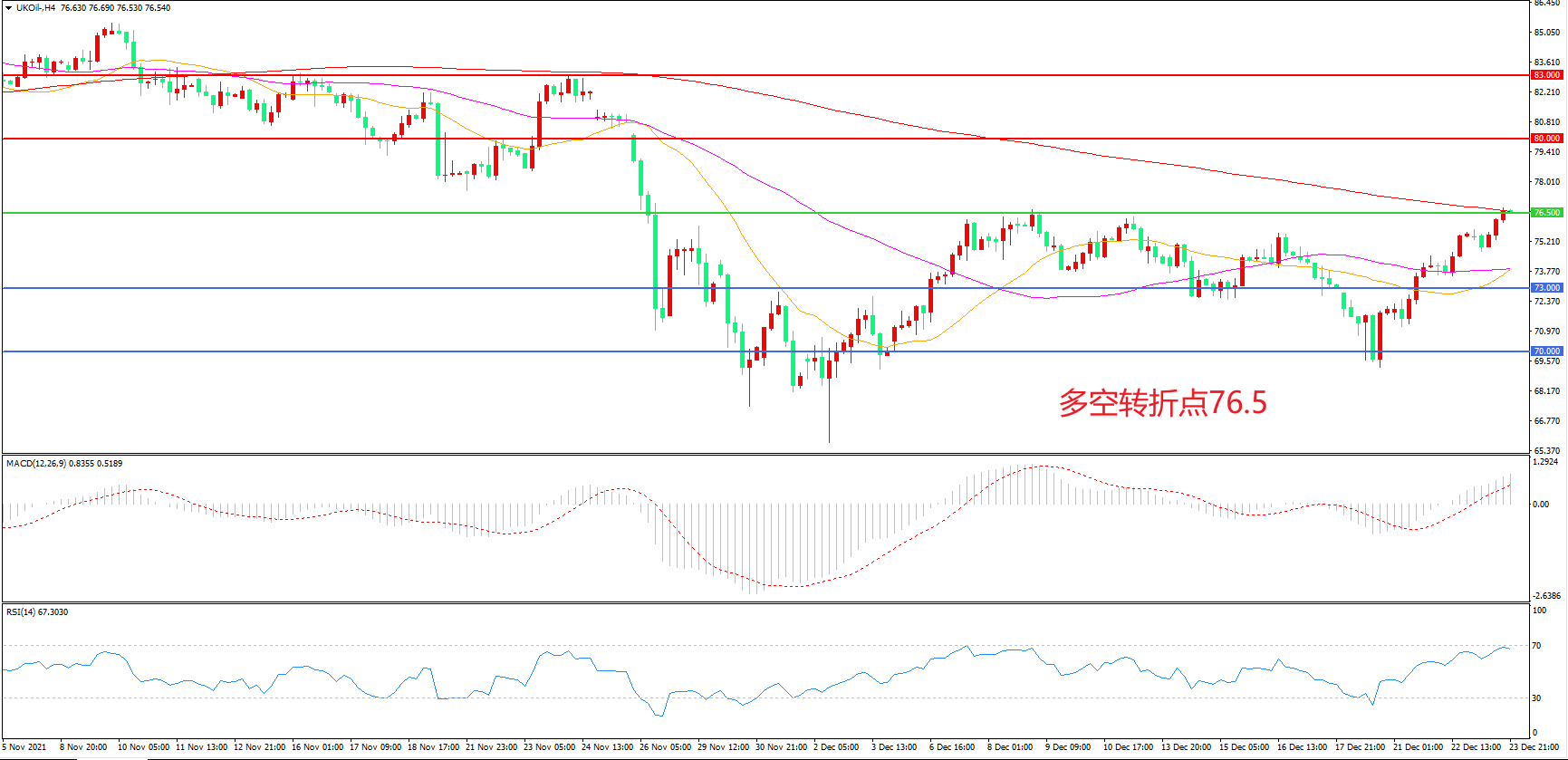周四(12月23日),因EIA原油库存降幅大于预期,且市场也消化了奥密克戎对对需求的影响,布伦特原油延续强势表现,收报76.50美元/桶。目前随着圣诞节的临近,交易员们也开始放假,具体会如何表现,可能要等到下周才能做出抉择,近期美国的炼油厂发生了爆炸事故,预计影响炼油需求50多万桶,这一事件也有可能成为行情发酵的导火索。