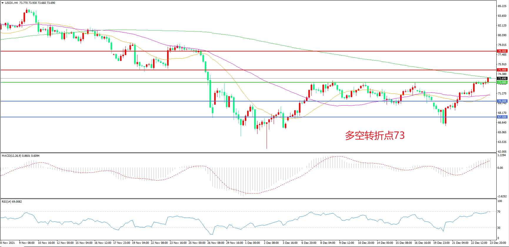 交易策略:在73.00之上看涨,目标75.00 77.50