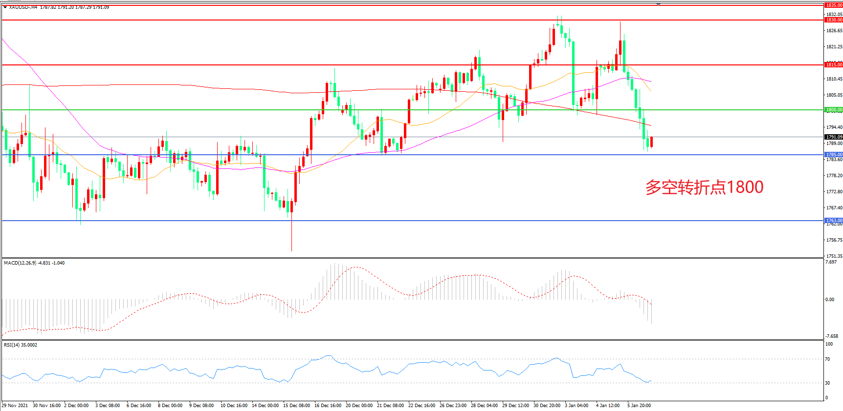 交易策略:在1800.00之下看跌,目标1785.00       1763.00