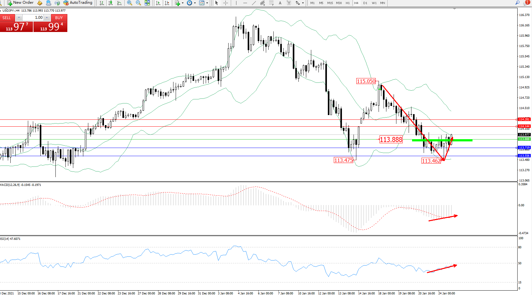 技术点评:空头动力延续布林带指标通道中下轨区间持续震荡下行,低位抵达113.462位置节点后震荡缓慢上移,触及布林带指标中轨附近节点后有继续攀升态势,布林带指标呈向下移动趋势走势后,开始有收口走势迹象,且有反转平移态势,MACD指标处于空头区域维持整理缓慢上移中,RSI指标处于空头区域维持震荡持续震荡上移,即将触及50均衡线附近节点;