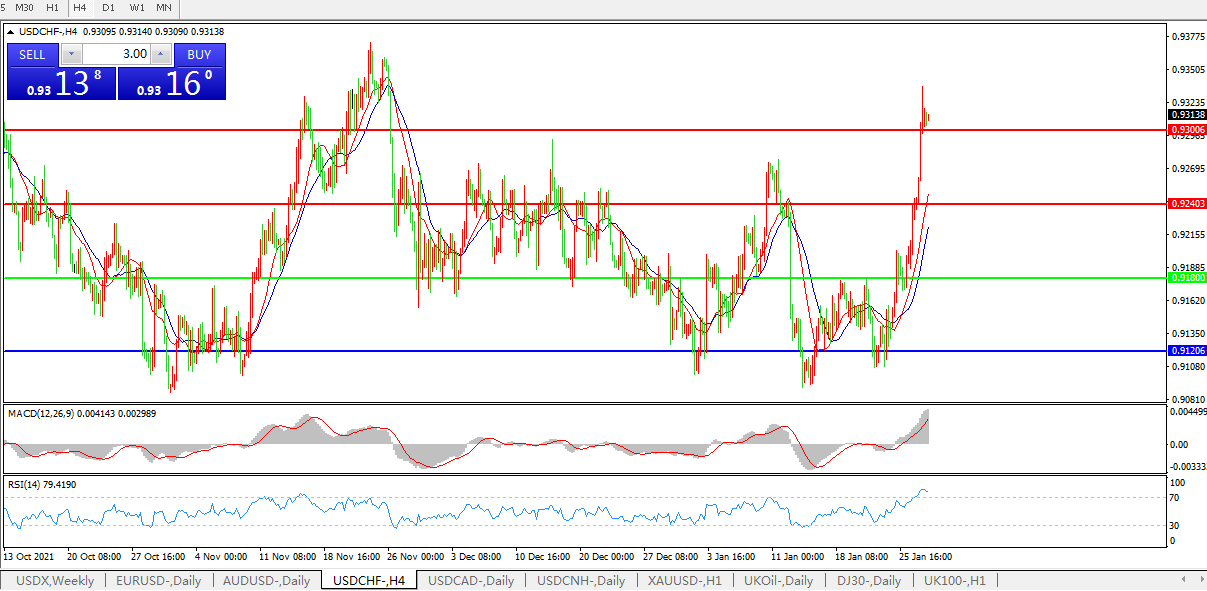 联储鹰派做多拥挤,美元兑瑞郎大幅上行
