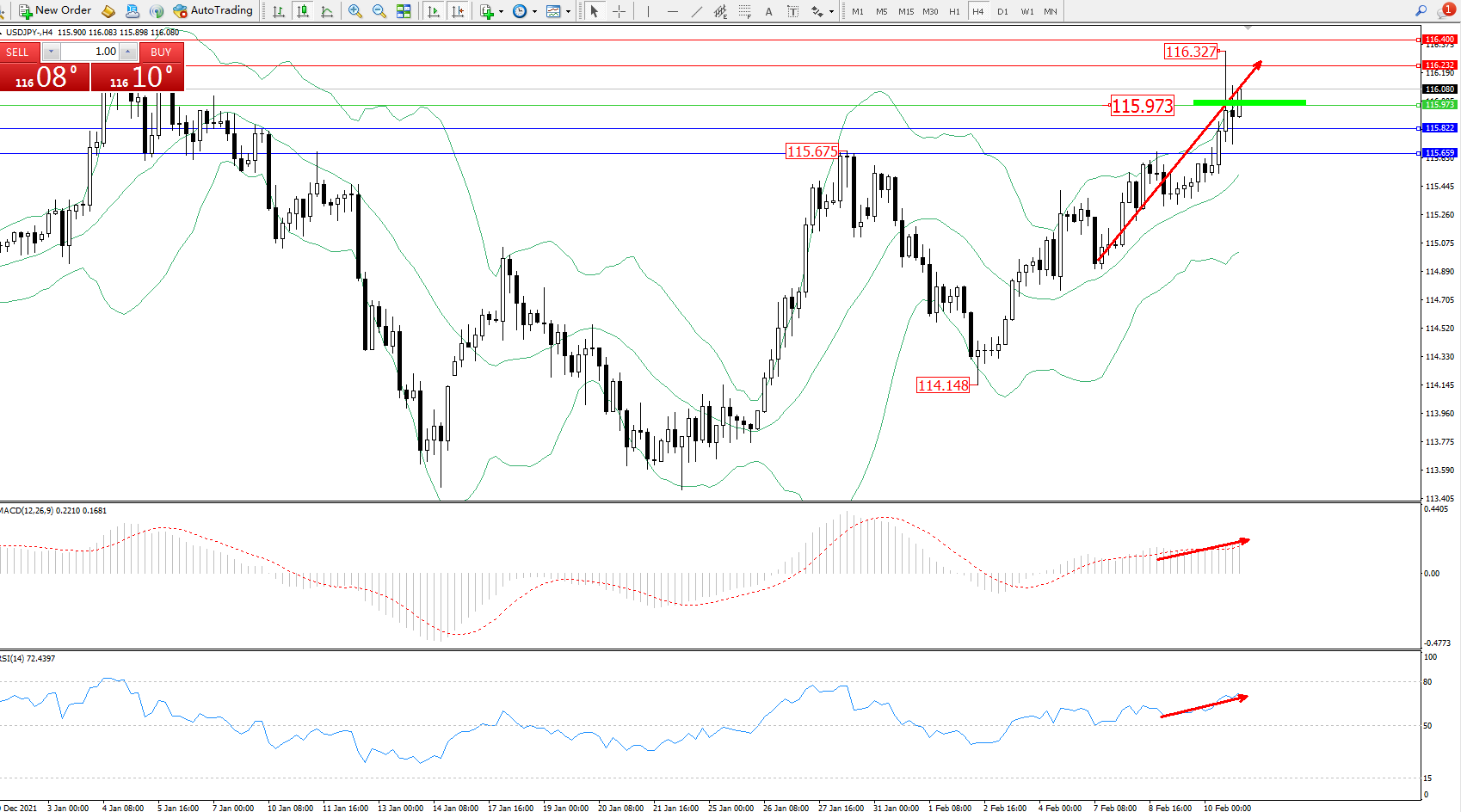 技术点评:多头动力延续布林带指标通道中上轨区间持续震荡上扬,高位抵达116.327附近遇阻回撤,短期多头动力依旧有进一步拉升态势,布林带指标呈上行趋势走势态势良好,MACD指标处于多头区域维持弱势徘徊向上移动中,RSI指标处于多头区域维持窄整理缓慢上行;