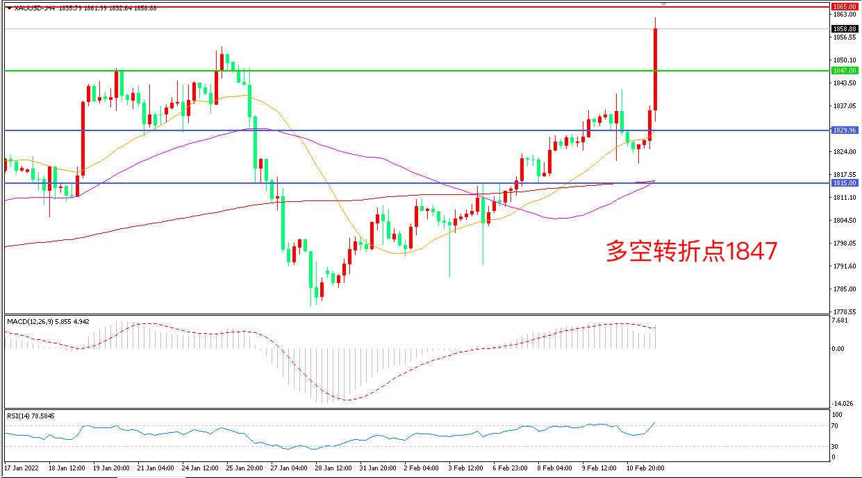 交易策略:在1830.00之上看涨,目标1847.00 1865.00