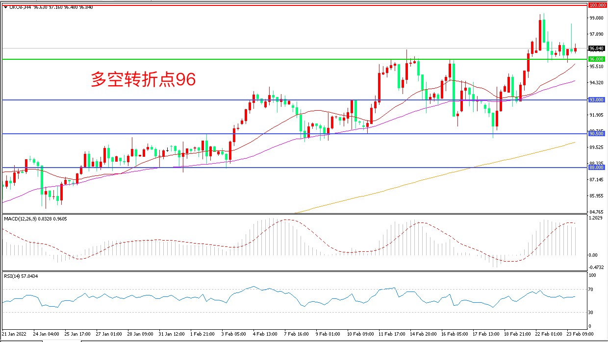 交易策略:在96.00之上看涨,目标100.00 103.00