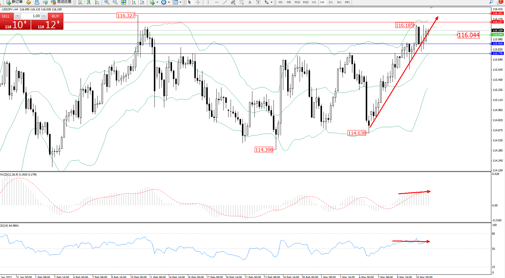 技术点评:多头动力延续布林带指标通道中上轨区间持续震荡上扬,高位抵达116.185位置节点后开始短期震荡,多头动力向上拉升态势良好,短期或有进一步上扬态势,布林带指标呈收口不断向上拉升中,MACD指标处于多头区域维持整理徘徊上移,RSI指标处于50均衡线上側弱势整理平移中;