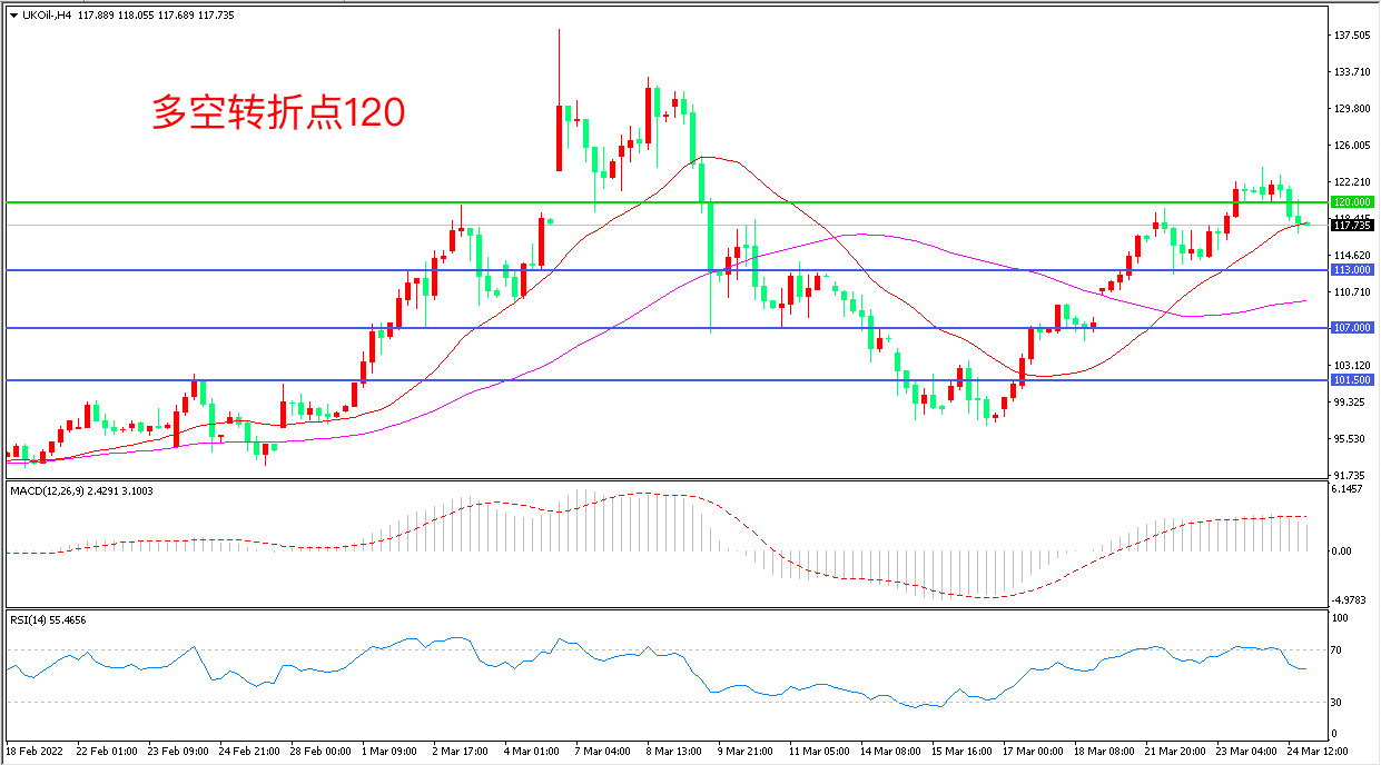 周四(3月24日)美国能源部长和国际能源署IEA在联合记者会上表示,准备好在必要时释放更多战略石油储备,布伦特原油受到打击,小幅下挫后收报117.73美元/桶。3月首周IEA宣布释放的6000万桶原油库存,仅占IEA成员国储备的4%,即还有空间释放更多,但俄乌局势陷入僵局的形势下,油价仍然易涨难跌。