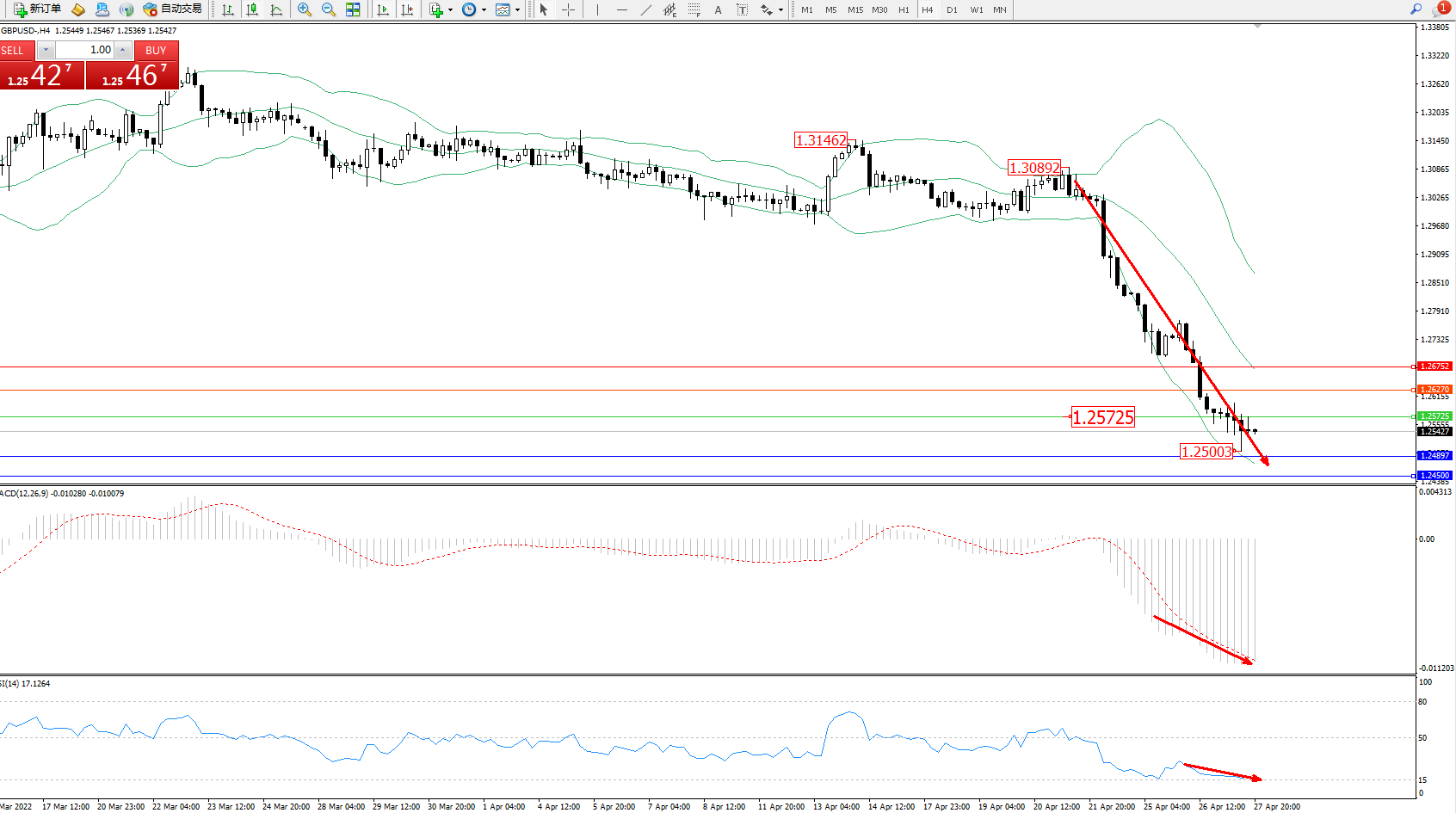 交易策略:1.25725下方看跌,目标1.24897、1.24500