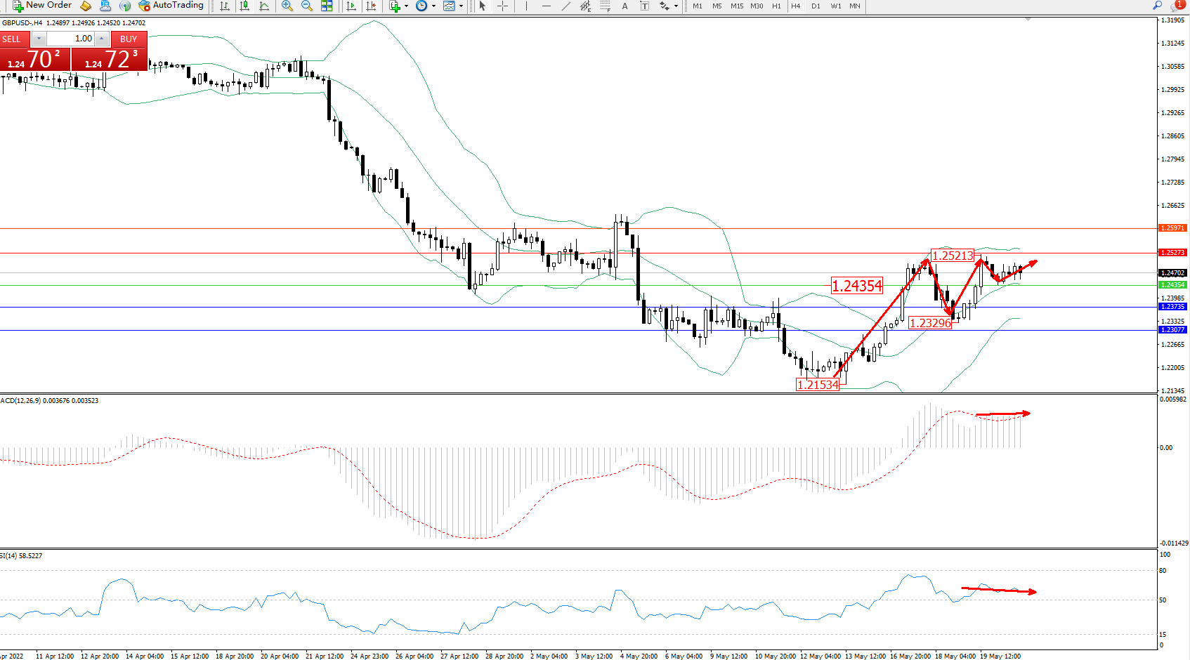 交易策略:1.24354上方看涨,目标1.25273、1.25971