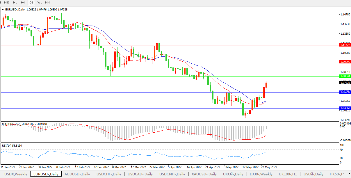 欧洲央行行长拉加德表示,欧元区利率可能在第三季末达到正值,这给欧元带去提振。拉加德的发言暗示欧洲央行存款利率将至少上调50个基点,并引发了人们对今年夏天该央行将进一步加息的臆测.