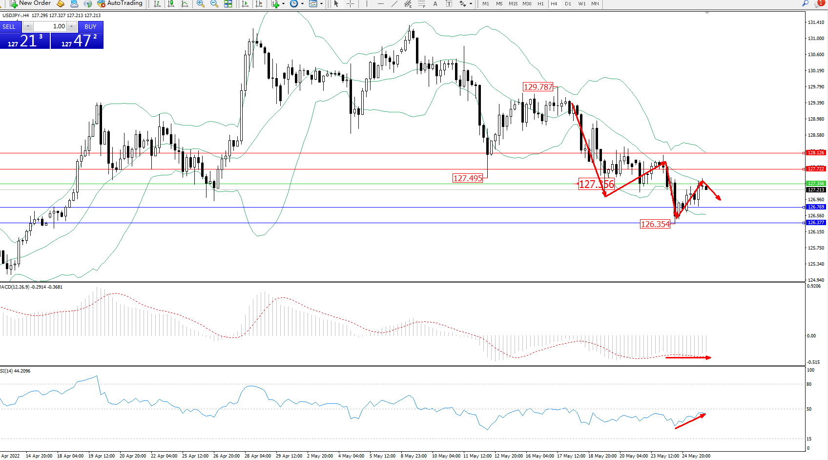 备选策略:127.356上方看涨,目标127.722、128.126