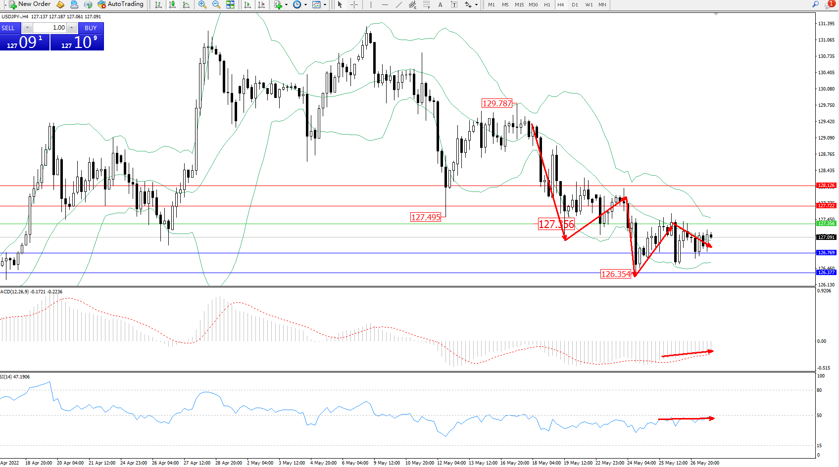 备选策略:127.356上方看涨,目标127.722、128.126