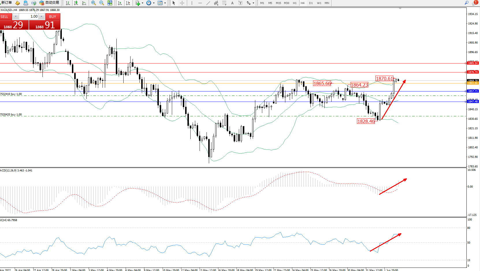 黄金维持1868附近震荡,美国5月ADP就业人数实际公布12.80万,预期30万,前值24.7万。美国5月ADP就业人数录得增加12.8万人,创2020年2月以来最小就业人数增幅。