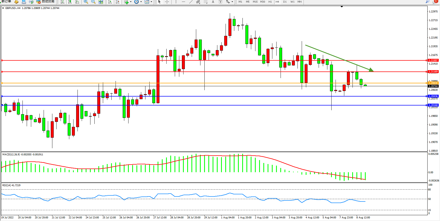 英镑兑美元维持1.20744附近震荡, 英国首相候选人特拉斯可能要求英国央行放弃其2%的通胀目标,转而在推动经济增长上发力。