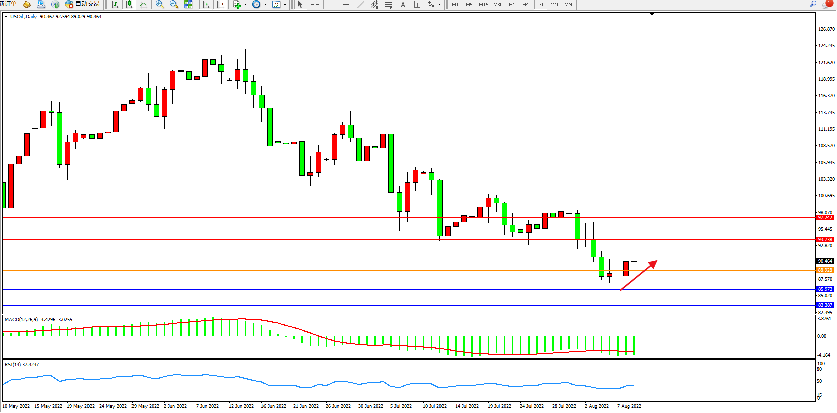 原油维持90.464附近震荡,俄罗斯石油管道运输公司(Transneft)表示,乌克兰自8月4日起已中止俄罗斯石油流向南欧,因为西方制裁措施导致乌克兰没有从俄罗斯收到过境费。