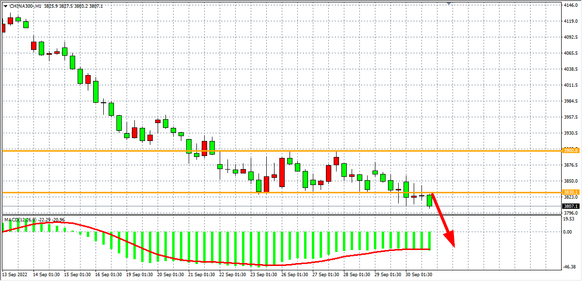 1小时图看,沪深300持续走弱,且下破近期以来的区间低点3830,目前该支撑已转化为阻力,MACD于零轴之下开始重新放量,走势出现空头的中继下跌形态。日内在3830之下看跌为主,下方目标3800-3770-3730。