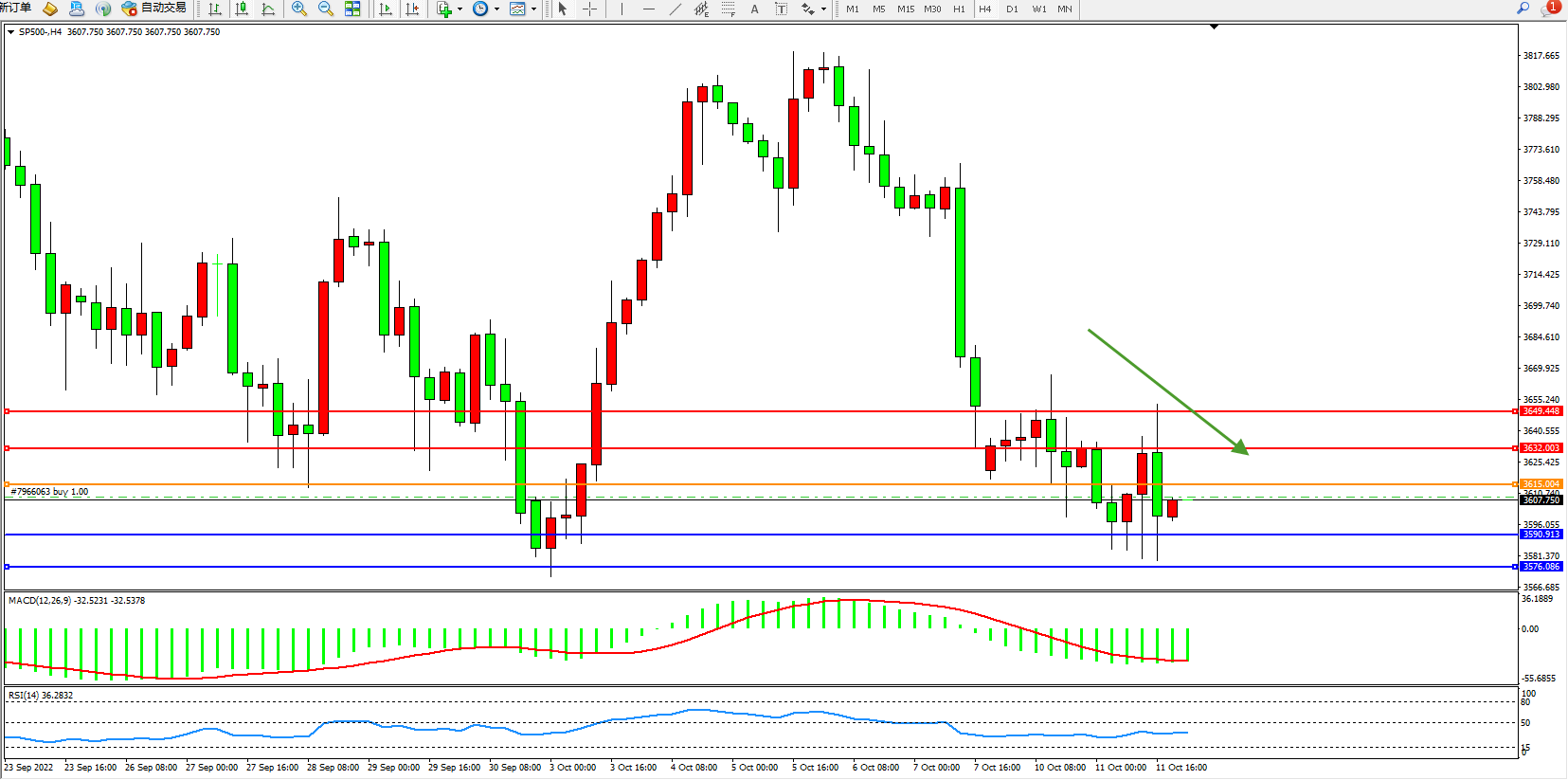 交易策略:3615下方看跌,目标3590、3576
