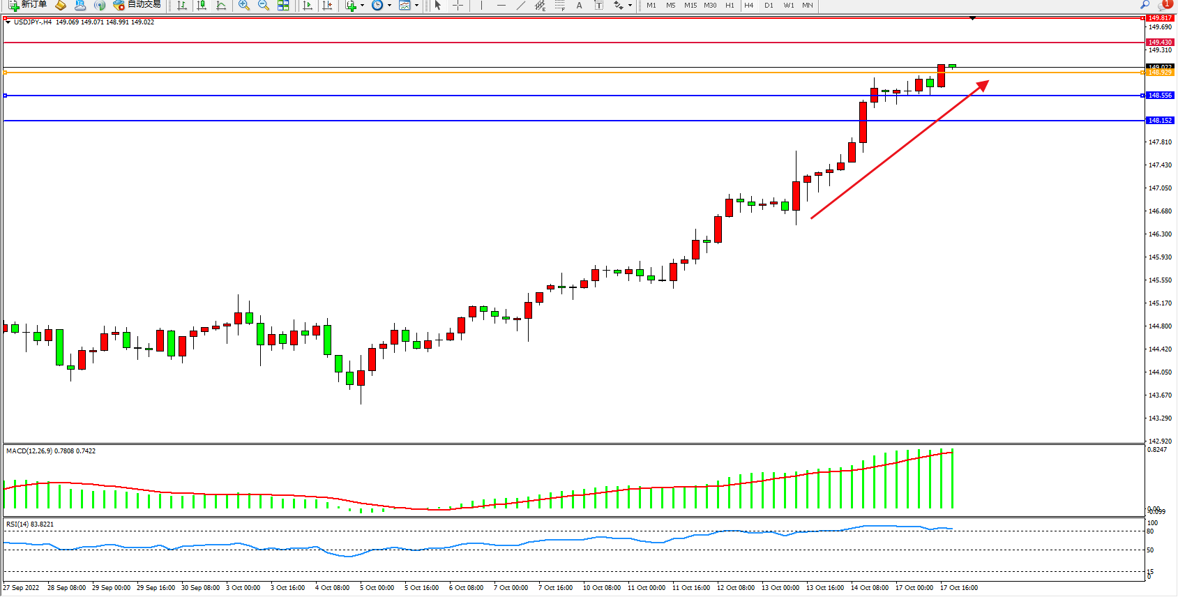 美元兑日圆维持149.022附近震荡,日本官员不一定设定了再次采取行动的底线,可能会关注经济下滑的速度。150是日本民众的关键心理水准,美日突破150可能会给政府带来压力,迫使其再次采取行动。