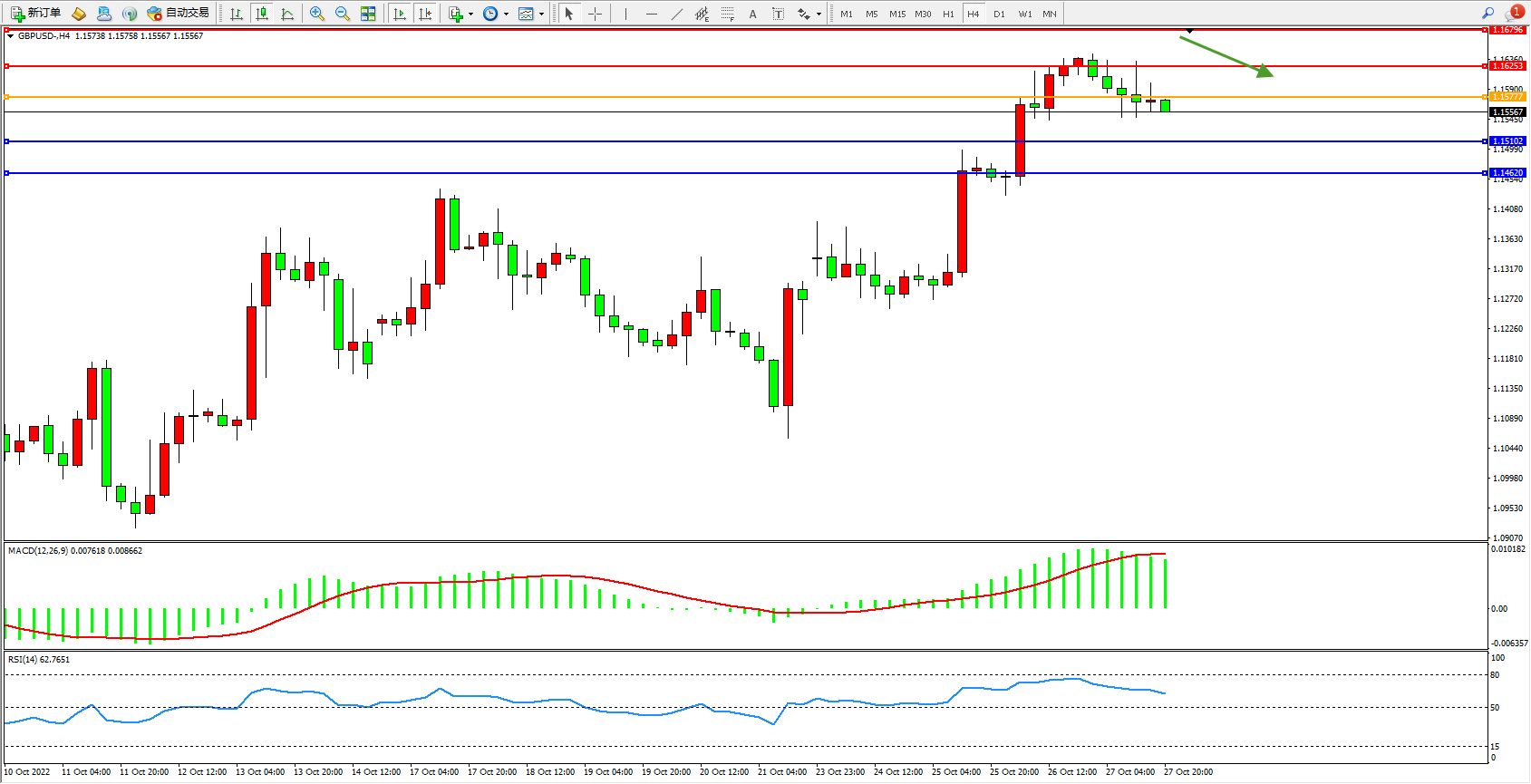 英镑兑美元维持1.15567附近震荡,交易员预计英国央行年底前将加息不到150个基点。利率期货价格显示,英国央行11月3日加息100个基点的可能性为37%。