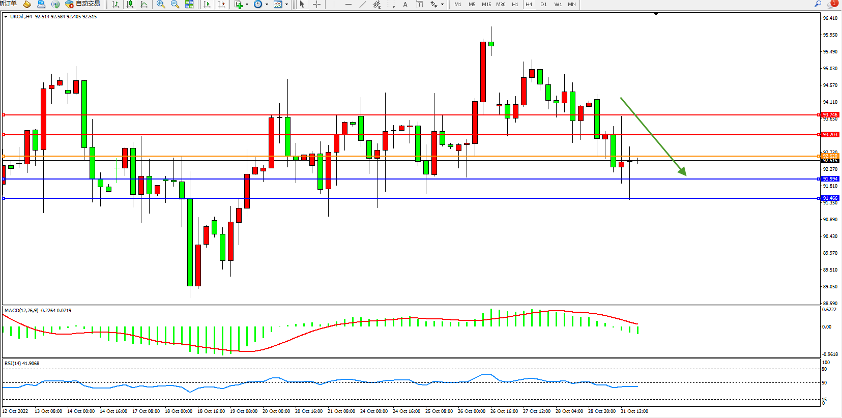 4小时图看:高位空头动力震荡不断下行,短期跌势或将延续,市场空头情绪开始笼罩,MACD指标处于0轴线下侧徘徊,RSI指标处于50均衡线下侧弱势整理;