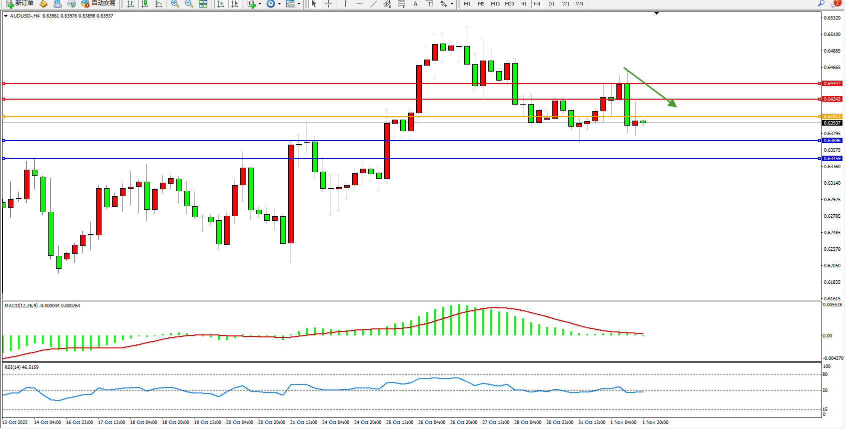 澳元兑美元维持0.63937附近震荡,澳大利亚至11月1日澳洲联储利率决定 2.85%,预期2.85%,前值2.60%,